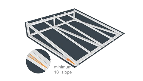 | 1 | Derajat kemiringan atap minimal 10°, agar air hujan turun seluruhnya. |